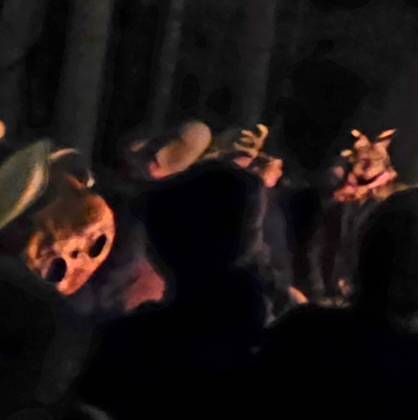 Back to the masks and costumes, they are elaborate. Blue jesters with wicked, yellowish grins. Women with reddish fox masks. Large bunny ears and dark-haired rabbit faces. The frog, the fish, and many other unique designs that had me staring in awe. I saw more owl masks at the event than any other type.