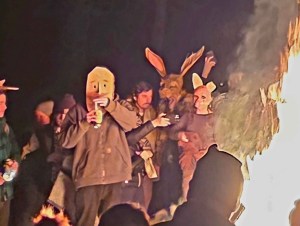 If that biblical reference to Christ’s death doesn’t get your attention and make your hair stand on end, as they march what they call, “Old Man Winter,” (He and I pictured below) down the long corridor to be burned in a fire that is hotter than Satan’s cauldron… probably nothing will.